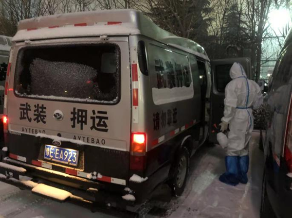 早上6點,我們的押運車緩緩駛出中行大門。靜謐的街道,隨處可見的圍擋,戒備森嚴(yán)、如臨大敵的檢查點,時刻提醒著大家疫情的嚴(yán)重狀況和全社會為抗疫所做出的努力。通過檢查點時,看著認(rèn)真負(fù)責(zé)的工作人員,大家心里一暖,我們不是孤軍,戰(zhàn)勝疫情的信念更堅定了。