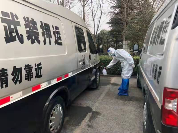 簡單的早餐過后,同志們按照《疫情防控期間押運應(yīng)急工作預(yù)案》開始了出車前的準(zhǔn)備工作,辦公區(qū)域和押運車輛的消殺、防護裝備的檢查與消毒,一切都做的一絲不茍。