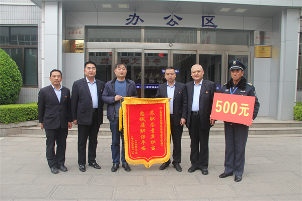 今年,在抗擊新冠病毒肺炎疫情的戰(zhàn)斗中,為了維護(hù)校園安全,人防三大隊(duì)隊(duì)員范保生恪盡職守,付出了極大的辛苦和努力,為學(xué)校疫情防控和安全保衛(wèi)工作做出了重要貢獻(xiàn)。為了鼓勵(lì)先進(jìn),樹(shù)立表率,3月30日下午,市第二高級(jí)中學(xué)校長(zhǎng)康錦光,將印有“盡職盡責(zé)顯擔(dān)當(dāng)忠誠(chéng)履職保平安”的錦旗送到了公司并獎(jiǎng)勵(lì)范保生獎(jiǎng)金500元。