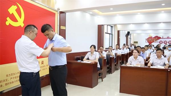 大會首先舉行預(yù)備黨員佩戴黨徽儀式,王高峰同志向新黨員同志表示祝賀,親手為2022年度預(yù)備黨員代表佩戴黨徽,希望新同志不辜負(fù)黨組織的期望,無愧于共產(chǎn)黨員的光榮稱號。