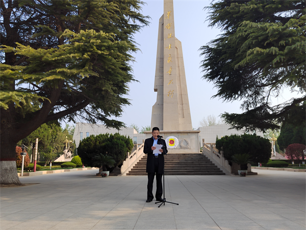 在革命烈士紀念碑前,張錫軍懷著無比崇敬的心情向革命烈士敬獻花籃,仔細整理花籃緞帶并發(fā)表祭文,緬懷革命烈士的豐功偉績和崇高精神,表達我們的深切悼念和無限敬仰。同時希望大家通過參觀學(xué)習(xí),深刻領(lǐng)悟此次活動的重要意義,提高工作熱情,改進工作作風,嚴守黨規(guī)黨紀。