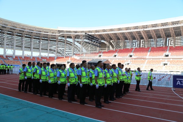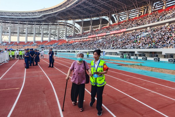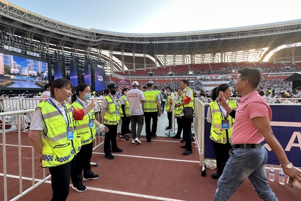 全體執(zhí)勤人員克服活動(dòng)時(shí)間長、天氣炎熱等困難,提前4小時(shí)到崗到位,自始至終服從命令、聽從指揮,堅(jiān)守崗位,認(rèn)真履責(zé), 既維護(hù)現(xiàn)場秩序,又服務(wù)群眾。在酷暑之下,全體安保人員頭頂烈日的“拷問”,腳踏熱浪的“侵襲”,堅(jiān)守在體育場內(nèi)的每個(gè)執(zhí)勤點(diǎn)。