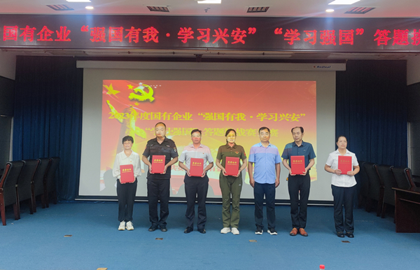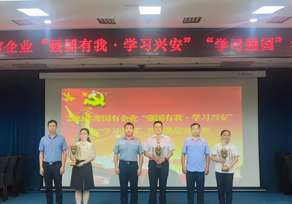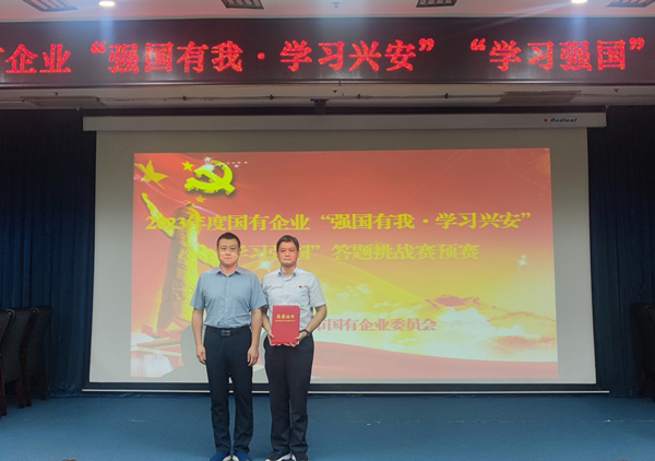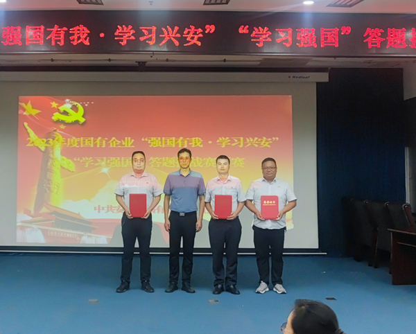 2023年8月4日,市國企黨委舉辦2023年度國有企業(yè)“強(qiáng)國有我·學(xué)習(xí)興安”“學(xué)習(xí)強(qiáng)國”答題挑戰(zhàn)賽預(yù)賽,來自全市17家國有企業(yè)共50人參加比賽,公司黨委副書記、監(jiān)事長張錫軍帶隊(duì),由9名選手組隊(duì)代表公司參賽。經(jīng)過激烈角逐,公司以平均成績第一名榮獲優(yōu)秀組織獎,安大鵬榮獲個人一等獎,趙高飛、馮文峰、喬力榮獲個人二等獎,肖冬、聶紹軍榮獲個人三等獎。