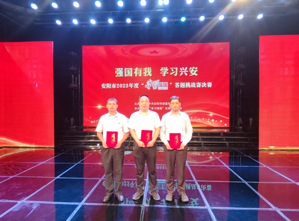 9月26日上午,由中共安陽市委宣傳部、“學(xué)習(xí)強(qiáng)國”安陽學(xué)習(xí)平臺(tái)聯(lián)辦的“強(qiáng)國有我?學(xué)習(xí)興安”安陽市2023年度“學(xué)習(xí)強(qiáng)國”答題挑戰(zhàn)賽決賽在安陽市融媒體中心隆重舉行,公司選派六名選手代表市國企黨委參賽。經(jīng)過激烈的“知識(shí)對(duì)決”,公司安大鵬、趙高飛榮獲二等獎(jiǎng),馮文峰榮獲三等獎(jiǎng),市國企黨委榮獲優(yōu)秀組織單位。