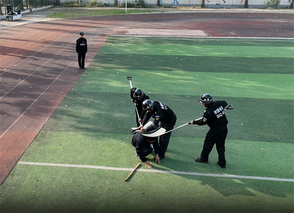 此次考核由公司副總經理李樞林擔任總指揮,考核內容為人防分公司消防技能、校園反恐防暴演練、文明禮儀崗、交通指揮手勢、校園鋼叉術、人防保安理論常識,守押分公司消防技能、槍支拆裝與維護、車輛輪胎更換、防搶劫預案、守押理論常識,特保大隊消防技能、警棍術、處突演練、文明禮儀及安檢、特保理論常識。考核方式以大隊為單位,分科目、分地點、分區(qū)域進行考核。