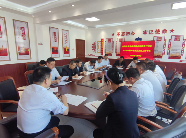 4月18日下午,黨委副書記、監(jiān)事長張錫軍主持召開專題會議,對2024年第一季度黨支部工作考核進行安排部署,他強調(diào),公司近年來黨建工作在國企中成績較為突出,想要樹立洹河保安黨建特色品牌是一個長期的過程,各黨支部要高度重視,按照《公司關于對黨支部工作考核的通知》要求及評分細則,認真準備相關資料,配合好黨委考核工作。