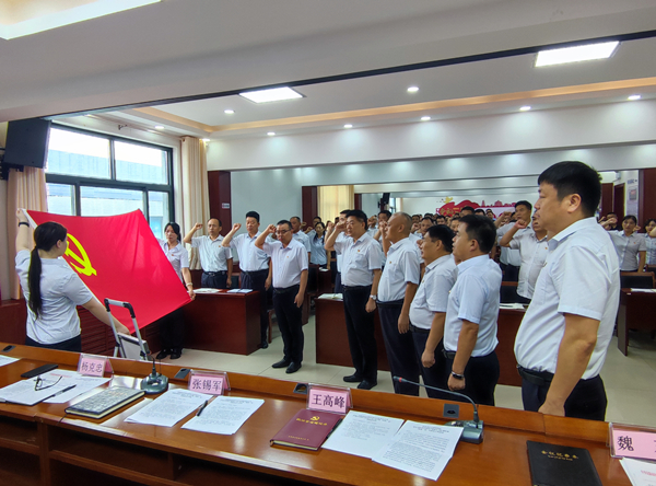 在王高峰同志帶領(lǐng)下,面對鮮紅的中國共產(chǎn)黨黨旗,16名新黨員舉起右拳、莊嚴(yán)宣誓,許下錚錚誓言。全體老黨員一同重溫入黨誓詞,時刻不忘自己的政治身份,無愧于共產(chǎn)黨員的光榮稱號。
