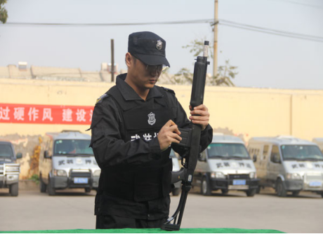 接下來,兩名押運員進行了槍支拆裝。在短短的27秒內(nèi),一名押運員就干脆利落完成了97-2防暴槍6個部件的拆裝,現(xiàn)場立即響起熱烈的掌聲。