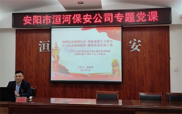 為了弘揚(yáng)偉大抗美援朝精神,銘記歷史、致敬英雄,引導(dǎo)廣大黨員干部傳承革命精神,牢記初心使命,勇于擔(dān)當(dāng)作為。由于當(dāng)前處于疫情防控期,2021年1月12日下午,在公司南二樓會(huì)議室,黨委錄制了專題黨課視頻,黨課以《回顧抗美援朝歷史 厚植愛(ài)國(guó)主義情懷 學(xué)習(xí)抗美援朝精神 熔鑄企業(yè)發(fā)展之魂》為主題,由第三黨支部書記聶紹軍同志講授,要求各黨支部充分利用微信工作群、學(xué)習(xí)強(qiáng)國(guó)云盤等網(wǎng)絡(luò)平臺(tái),通過(guò)集中學(xué)習(xí)或自主學(xué)習(xí)形式動(dòng)員廣大黨員收看,并做好黨課筆記。
