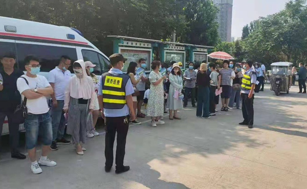 據(jù)帶隊(duì)領(lǐng)導(dǎo)介紹,巡防隊(duì)員早上6點(diǎn)半就到崗位維持秩序。這幾天,氣溫較高,隊(duì)員克服執(zhí)勤時(shí)間長(zhǎng),天氣炎熱的不利影響,精神抖擻為轄區(qū)居民測(cè)體溫、做登記,指揮排隊(duì)、車輛有序停放,引導(dǎo)注射疫苗人員按序進(jìn)行,為轄區(qū)居民提供強(qiáng)有力保障,為健康保駕護(hù)航。