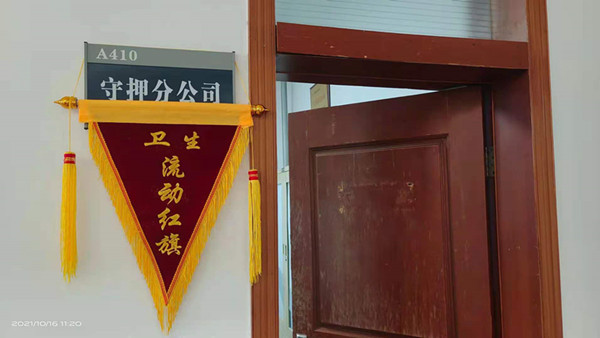 10月15日下午,公司監(jiān)察室、辦公室、后勤部聯(lián)合對公司各科室進(jìn)行全方位的衛(wèi)生大檢查,守押分公司獲得了“衛(wèi)生流動(dòng)紅旗”。
