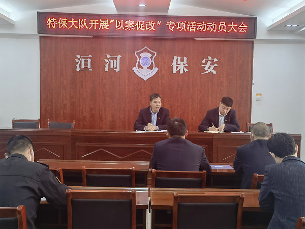 為認(rèn)真學(xué)習(xí)貫徹公司“以案促改”活動(dòng)方案精神,3月14日下午,特保大隊(duì)在公司南二樓會(huì)議室召開班長以上骨干動(dòng)員會(huì)。大隊(duì)長李樞林對專項(xiàng)活動(dòng)大隊(duì)方案進(jìn)行部署,總經(jīng)理助理趙潤平參加動(dòng)員會(huì)并提出具體要求。