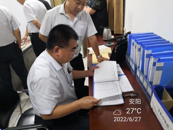 在檢查中,韋洪東詳細(xì)查看了大隊(duì)談心記錄、跟車(chē)、槍彈保養(yǎng)和預(yù)案演練等各項(xiàng)臺(tái)賬,還查看了大隊(duì)防疫記錄和守庫(kù)押運(yùn)登記本。并對(duì)守押要害崗位審查表進(jìn)行排查。在守庫(kù)室,張新平查看了槍彈的數(shù)量、存放和槍彈庫(kù)分離的改造,檢查了消防和報(bào)警設(shè)備,現(xiàn)場(chǎng)查看了守庫(kù)室和車(chē)輛的衛(wèi)生情況。