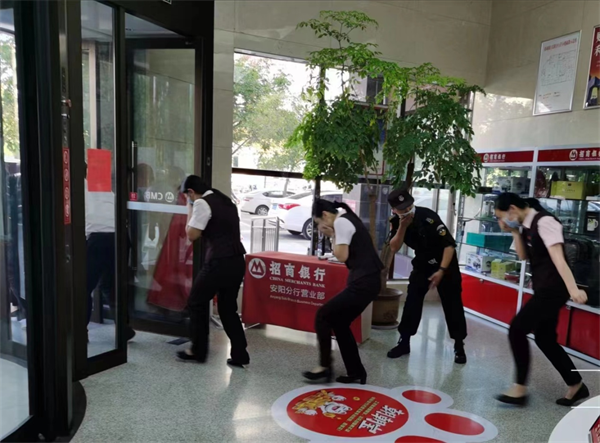 為進(jìn)一步強(qiáng)化“國慶”、“二十大”期間金融部門銀行業(yè)對外營業(yè)安全及應(yīng)對突發(fā)事件能力,10月3日下午,招商銀行聯(lián)合特保大隊駐招商銀行特保班進(jìn)行了消防應(yīng)急預(yù)案演練,特保班長王瑜負(fù)責(zé)組織指揮,特保隊員分工明確行動迅速、妥善處理險情,受到銀行保衛(wèi)部經(jīng)理王瀟曉的好評。