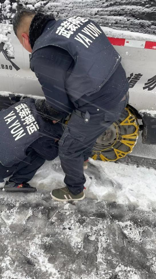 早上點(diǎn)名前,大隊(duì)長楊中朝就通過大隊(duì)微信工作群向各行中隊(duì)傳達(dá)了指示。一是要根據(jù)路況,精準(zhǔn)研判,行車中減速慢行,不超車,車上備足兩套防滑鏈,對于上下坡路段積雪嚴(yán)重的要及時(shí)進(jìn)行安裝防滑鏈,確認(rèn)安全后再行駛。二是針對銀行網(wǎng)點(diǎn)的路況要及時(shí)和銀行網(wǎng)點(diǎn)進(jìn)行溝通,車輛行駛不到的要及時(shí)進(jìn)行上報(bào),通過與銀行網(wǎng)點(diǎn)聯(lián)系,做到延遲送達(dá)或者暫不運(yùn)送,謹(jǐn)記安全第一。三是要根據(jù)上午運(yùn)送的線路路況,對下午的出車接款時(shí)間做出調(diào)整,通過與銀行網(wǎng)點(diǎn)的溝通聯(lián)系,適時(shí)提前下午出車的接款時(shí)間,力爭在晚上溫度下降前安全返回。