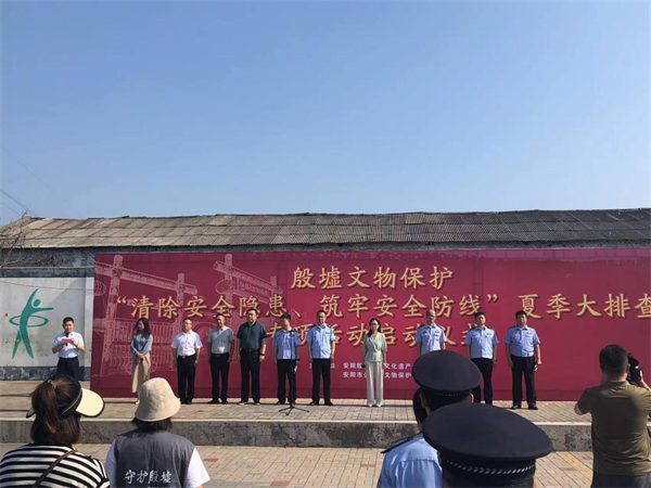 8月3日上午8:30,殷墟管委會(huì)、安陽(yáng)市公安局聯(lián)合舉辦殷墟文物保護(hù)“清除安全隱患、筑牢安全防線”夏季大排查專項(xiàng)活動(dòng)啟動(dòng)儀式,人防四大隊(duì)派駐殷都區(qū)文保巡防隊(duì)10名巡防隊(duì)員參加活動(dòng)。