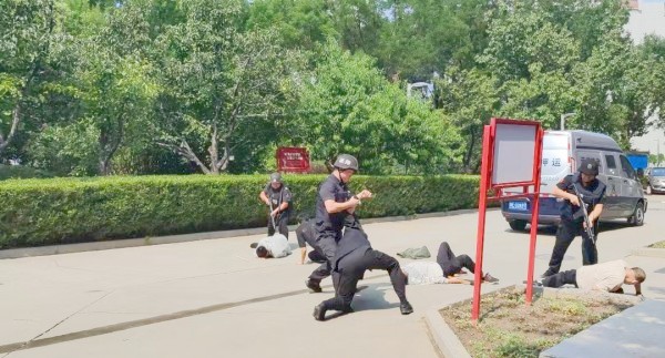 演練內(nèi)容以5名不法分子企圖在銀行網(wǎng)點(diǎn)門口乘押款員裝卸款箱時進(jìn)行搶奪款箱為背景,開展防盜搶預(yù)案演練。面對歹徒,車組人員各司其職,快速反應(yīng),駕駛員立即向駐地隊(duì)長報告,大隊(duì)長迅速下達(dá)啟動應(yīng)急預(yù)案的指令,并向銀行保衛(wèi)部門報告;同時守押隊(duì)員毫不畏懼,迅速行動控制歹徒,確保人員及款箱安全。