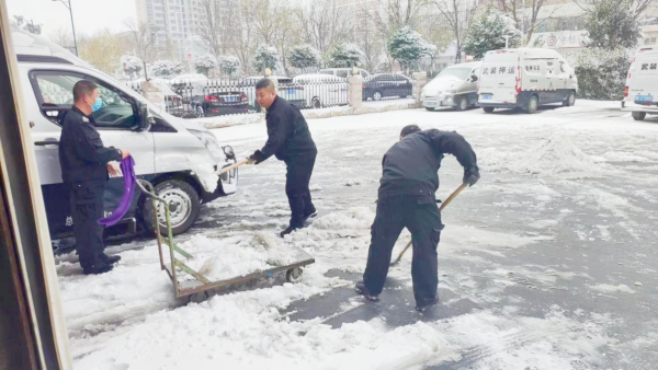 大家不畏嚴寒,拿起鐵鍬、掃帚、鏟子等工具在車庫大院和車輛進出口進行清掃。經(jīng)過大家的相互配合、共同努力,大院變得干凈通暢,不僅為押運車輛安全出行提供了保障,同時,也體現(xiàn)了守押五大隊團結(jié)協(xié)作、積極向上的精神風貌。