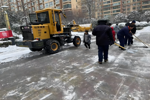 除雪行動(dòng)中,鼎誠(chéng)物業(yè)合理調(diào)配人員、機(jī)械,采取人機(jī)相結(jié)合的方式,分工明確,分片負(fù)責(zé),劃區(qū)作戰(zhàn),先清后鏟,隨降隨清,隨清隨運(yùn)。大家齊心協(xié)力,團(tuán)結(jié)協(xié)作,對(duì)各項(xiàng)目小區(qū)主干道、停車(chē)場(chǎng)道路出口、臺(tái)階等部位進(jìn)行清掃。