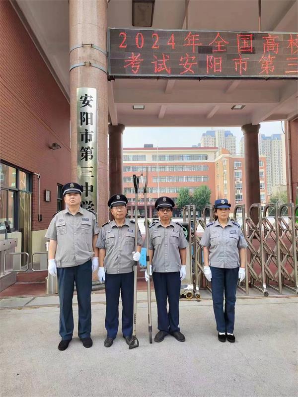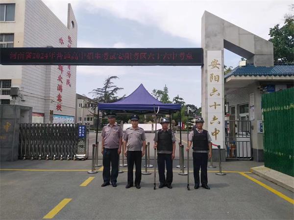 考試期間,全體執(zhí)勤隊(duì)員牢固樹(shù)立全心全意為考生服務(wù)的思想,時(shí)時(shí)處處把安全意識(shí)、安全責(zé)任放在首位,為考生營(yíng)造安全、和諧的考試環(huán)境。早上6點(diǎn)半,護(hù)考保安隊(duì)員準(zhǔn)時(shí)到崗在位,嚴(yán)格按照公司“定人、定崗、定時(shí)、定責(zé)”要求,警容嚴(yán)整,嚴(yán)陣以待,配合校方在學(xué)校門(mén)口設(shè)置警戒區(qū)域,避免無(wú)關(guān)人員靠近,做好校門(mén)口交通保障、門(mén)衛(wèi)守護(hù)、入場(chǎng)指導(dǎo)、警戒維護(hù)等……他們各司其職、認(rèn)真負(fù)責(zé)。執(zhí)勤中,涌現(xiàn)了許多好人好事,如:駐四中考點(diǎn)、一中考點(diǎn)護(hù)送輪椅上行走不便學(xué)生的保安隊(duì)員陳文斌、王鳳銀,駐三十二中考點(diǎn)撿到汽車(chē)鑰匙和家中鑰匙的隊(duì)員牛新玉等。盡管汗水打濕了衣服,但他們依然頂著酷暑堅(jiān)守在各自的崗位上,為莘莘學(xué)子保駕護(hù)航,良好的精神風(fēng)貌贏(yíng)得了考生和家長(zhǎng)的一致好評(píng)。