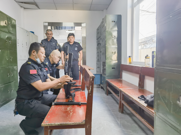 因近期大隊勤務(wù)繁重,為了在有限的時間內(nèi)完成訓(xùn)練進(jìn)度,大隊領(lǐng)導(dǎo)合理規(guī)劃時間,平時組織各車組利用工余時間分別開展訓(xùn)練;周六、周日集中開展擒敵拳及槍支拆解等科目的訓(xùn)練。