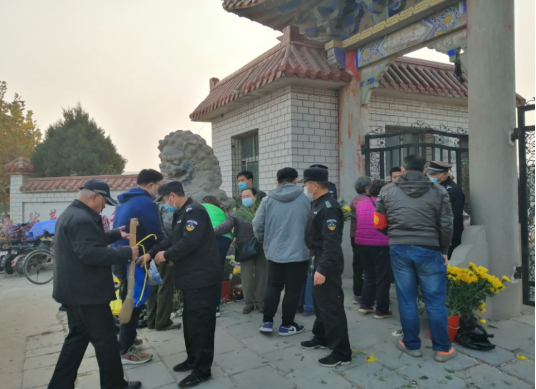勤務實施期間,隊員們每天早六點即準時進入崗位,全力維護祭祀治安秩序。大家一面堅持原則,依法依規(guī)文明執(zhí)勤,一面耐心給群眾做好宣傳解釋工作,避免祭掃人員不理解、不配合,導致事態(tài)升級。因反復提醒、竭力勸阻攜帶、燃燒紙帛現象,許多同志的嗓子發(fā)癢嘶啞,卻全然不顧。同時,采取靈活機動的工作方法,積極做好引導,為行動障礙的祭掃人員提供方便,受到群眾好評。