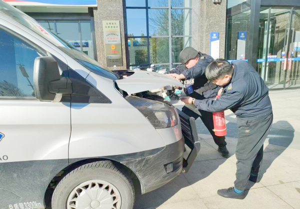 參加演練的押運車組人員,模擬了押運車輛火災(zāi)發(fā)生時的應(yīng)急處置和滅火操作。在副隊長趙良余的“開始”指令下,隊員們快速響應(yīng),按照緊急處置預(yù)案進(jìn)行操作。押運員按要求站位進(jìn)行警戒,一名調(diào)款員迅速卸下押運款箱至安全位置,由押運員保護(hù)款箱的安全,另一名調(diào)款員協(xié)助司機(jī)使用車載滅火器對車輛進(jìn)行初期火災(zāi)撲救。整個過程緊張有序,隊員們反應(yīng)迅速,彼此之間配合默契。