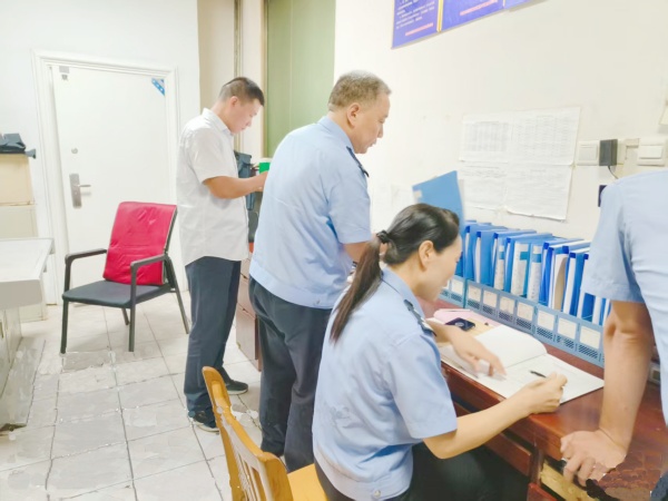 8月25日上午,林州市公安局治安大隊(duì)民警郝白山一行三人到守押七大隊(duì)林州農(nóng)商行中隊(duì)檢查槍彈安全工作,大隊(duì)長楊中朝全程陪同檢查。