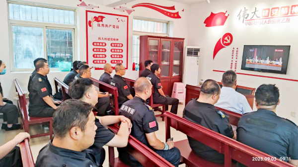 為慶祝抗戰(zhàn)勝利80周年,9月3日上午,守押一大隊精心組織全體隊員集中觀看閱兵直播。