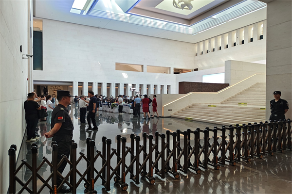 主題展示環(huán)節(jié)中,《周易》與四大全球倡議展示、服裝中的文明圖景展示等吸引大量觀眾,隊(duì)員采取“定點(diǎn)守護(hù)+動態(tài)巡邏”模式,在各展示區(qū)域合理布控,引導(dǎo)觀眾有序參觀;AI展示環(huán)節(jié)人員集中、互動性強(qiáng),隊(duì)員加大巡查頻次,及時(shí)提醒觀眾注意安全,有效防范意外。