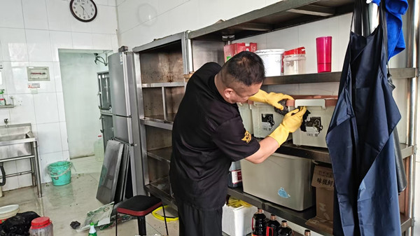 本次大掃除嚴(yán)格遵循“無死角、全覆蓋、保安全”的原則,工作人員分工明確、密切協(xié)作。在操作間,對灶具、抽油煙機、蒸箱等設(shè)備進(jìn)行了深度去污與洗刷,確保無油漬殘留;在就餐區(qū),全面擦拭桌椅、門窗,徹底清掃地面,保持環(huán)境整潔明亮;在食材儲存區(qū),系統(tǒng)整理貨架、冰柜與消毒柜,并落實消毒措施。同時,針對下水道、垃圾桶周邊等衛(wèi)生死角進(jìn)行重點清理,有效杜絕細(xì)菌滋生與污染隱患。