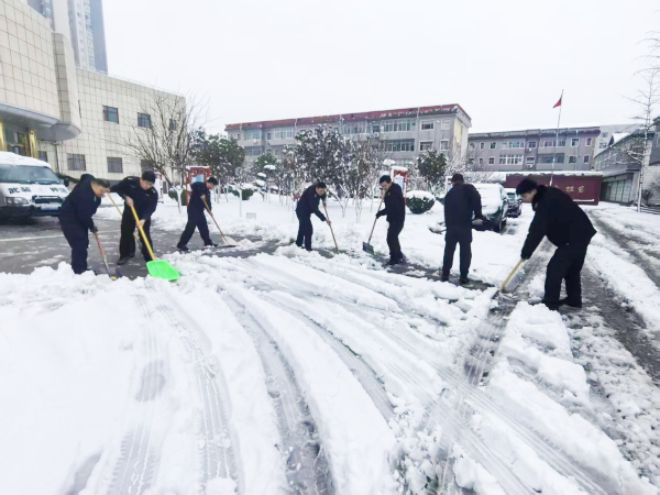 面對(duì)突如其來的冰雪天氣,大隊(duì)全體隊(duì)員自發(fā)提前到崗。天還未亮,大家便頂著凜冽寒風(fēng),拿起鐵鍬、掃帚等工具,對(duì)單位院內(nèi)及周邊的主要通道、出入口等重點(diǎn)區(qū)域的積雪進(jìn)行全面清掃。隊(duì)員們分工明確、配合默契,有的奮力鏟除厚實(shí)積雪,有的細(xì)心清掃殘留冰雪,經(jīng)過一個(gè)小時(shí)的奮戰(zhàn),成功開辟出一條條安全通暢的“綠色通道”,有效消除路面濕滑安全隱患,保障了早間勤務(wù)出行安全有序。
