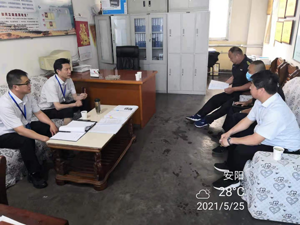 5月25日下午,公司監(jiān)察室主任褚衍強(qiáng)、副主任李衛(wèi)軍到守押七大隊(duì)檢查指導(dǎo)工作,大隊(duì)長(zhǎng)楊海波、副隊(duì)長(zhǎng)李志民、管宇飛陪同。