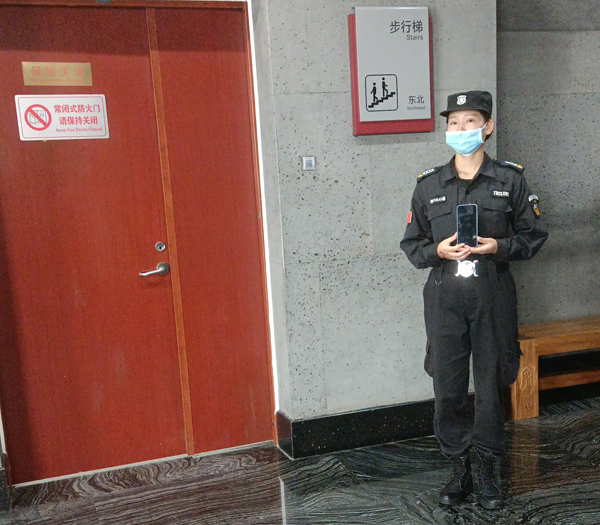 下午3點半,一名游客慌慌張張來到安檢處,尋問是否有人拾到手機。特保隊員馬上把游客帶到安保部,經(jīng)過安保部工作人員認真核實,確認游客為失主,將手機交還與她。工作人員同時將特保隊員拾到手機,及時上交的情況告訴游客。