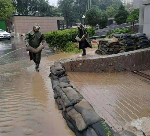 保安隊(duì)員冒著暴雨四處巡查客戶單位各排水口,疏通堵塞的下水道,讓雨水快速流過;利用防汛沙袋及時(shí)建立防汛墻阻止雨水倒灌進(jìn)入地下停車場(chǎng);對(duì)部分滲透入地下車庫的雨水進(jìn)行及時(shí)清理。很快,隊(duì)員的有效處置措施,阻止了雨水漫入地下車庫,避免了客戶單位財(cái)產(chǎn)損失。