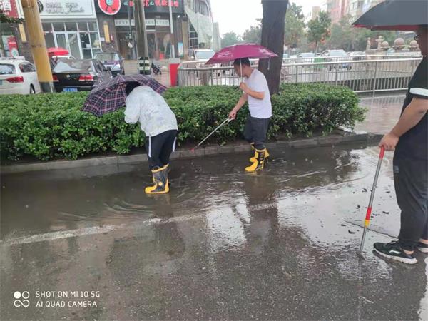 7月21日早上,公司人防一大隊派駐商頌辦事處隊員在辦事處張廣杰主任、中隊長劉桂斌的組織下,經(jīng)過簡短的防汛抗洪誓師動員后,隊員們立即投入到防汛工作中。為保證路面排水順暢,隊員冒著傾盆大雨清理下水道上的堵塞物,一點一點將垃圾雜物清理干凈,不一會功夫,低洼處積水散去,路面恢復正常通行。