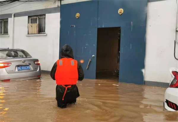 2021年7月22日早上7點左右,安陽幸福路工行憑證庫房值班隊員告急,由于下雨急,積水深,庫房有雨水倒灌情況。鄭芳軍隊長接到救援電話后,憑證庫房是工行的票據(jù)重地,汛情就是命令,立即組織6名防汛突擊隊冒著深及脖子的洪水,手拉救生繩,身穿救生衣,冒著生命危險向憑證庫房挺進。到達后,發(fā)現(xiàn)庫房門口水位上升,他們及時將票據(jù)挪到安全位置,防止浸泡受損,門口用沙袋進行封堵,確保了憑證庫房安全。看到安全了他們又順原路冒雨淌水于晚上10點安全返回市行門崗。