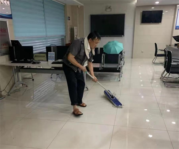安陽市住房公積金隊員陳建國,凌晨發(fā)現(xiàn)大廳有雨水倒灌,及時用沙袋進行加固封堵,清理大廳積水,衣服全部都濕透了,也毫無怨言。