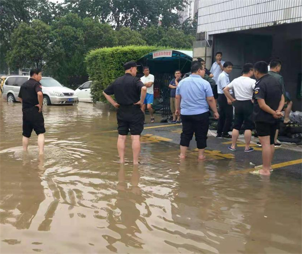 2021年7月21日夜23點,安陽的雨越下越大,大雨傾盆,人防四大隊三中隊中隊長鄭芳軍根據(jù)公司防汛應急預案召開班隊長視頻會議,要求中隊所有值班隊員、班長、黨員迅速行動起來,加大重點部位巡邏力度,如有隱患及時匯報,及時預防,盡全力減少客戶損失,全力抗汛。