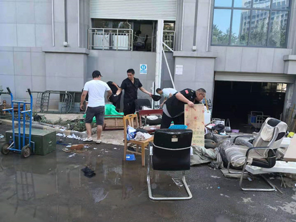 與此同時(shí),大隊(duì)領(lǐng)導(dǎo)積極與客戶行協(xié)調(diào),臨時(shí)借用樓上房間作為大隊(duì)臨時(shí)辦公地點(diǎn),以存放武器裝備等物品。由于大量生產(chǎn)物資被洪水淹沒(méi)損毀,大隊(duì)領(lǐng)導(dǎo)第一時(shí)間向公司申報(bào)領(lǐng)取新的物資,盡最大努力在最短時(shí)間恢復(fù)勤務(wù)的正常運(yùn)行。