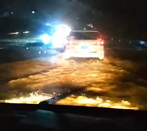 晚6點,突接中原銀行湯陰亞新ATM機,被淹告急,為了挽救人民財產(chǎn),中原銀行隊員方志林、白亮、魏鑫冒著風(fēng)險驅(qū)車前往,任務(wù)就是為了把淹沒在洪水中ATM里面的錢拉回來。前往的路上,無路可走,到處汪洋,司機白亮克服困難,涉水而行,晚上8點,趕到湯陰,走至湯陰火車站附近往南處的時候,路截斷了,水深到胸部,但距離ATM還有兩公里的路程,為了完成任務(wù),為了挽救人民財產(chǎn),請示領(lǐng)導(dǎo)后,決定涉水走路前進(jìn)。方志林、魏鑫舉著槍和銀行人員手拉手冒著雨倘著水艱難的走到了ATM點,往返四公里,用將近兩個小時的時間完成了任務(wù)。因為雨天路上情況變化太大,為了給在湯陰的車探明路況,晚上九點,大隊長李艷軍和劉靜雨開車前往湯陰,尋找可行路線,歷經(jīng)重重困難,于10點左右兩車匯合,由于提前探明路況,返程時沒有遇到很大困難,返回到中原銀行時,是晚上11點半左右。