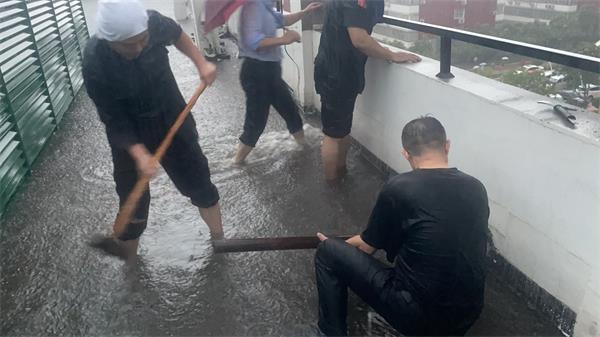 凌晨三點(diǎn),看到雨越下越大,人防一大隊(duì)駐浦發(fā)銀行安陽(yáng)分行崗立刻啟動(dòng)應(yīng)急響應(yīng),巡查銀行各樓層安全。當(dāng)查到四樓時(shí),發(fā)現(xiàn)電井有漏水,而且有越漏越大的趨勢(shì),考慮到電井里全行的電源如果出現(xiàn)故障,整個(gè)銀行將癱瘓,保安隊(duì)員果斷停掉全行電源。在銀行辦公室宋主任和張行長(zhǎng)帶領(lǐng)下,全體隊(duì)員迅速?zèng)_向四樓房頂,由于雨下的太大,這時(shí)的屋頂水已經(jīng)沒(méi)過(guò)膝蓋。如果不及時(shí)處理,將造成重大損失。但手邊沒(méi)有工具,大家只能用錘和鎬將墻上打洞及時(shí)排水。在猛烈的暴雨中,大家掄大錘,用鎬敲,全體隊(duì)員和銀行工作人員共同努力,靠手工在四樓后墻挖出七、八個(gè)洞,終于解除了險(xiǎn)情。