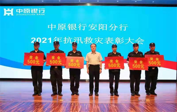 2021年9月23日,中原銀行安陽分行在三樓報(bào)告廳隆重召開先進(jìn)表彰大會,分行領(lǐng)導(dǎo)班子、各支行行長和部門經(jīng)理全部參加,會議由分行紀(jì)委書記牛書記主持,表彰在“7.22”防汛救災(zāi)中表現(xiàn)突出的先進(jìn)集體和個人,大會表揚(yáng)了安陽市洹河保安服務(wù)公司駐分行人防四大隊(duì)保安中隊(duì)長田衛(wèi)順、郭海波等6位先進(jìn)個人,并每人發(fā)放獎金500元。表揚(yáng)他們在大災(zāi)面前“困難時(shí)刻拉得出,危急時(shí)刻頂?shù)蒙?,關(guān)鍵時(shí)刻靠得住,決戰(zhàn)時(shí)刻打得贏”的防汛救災(zāi)精神。