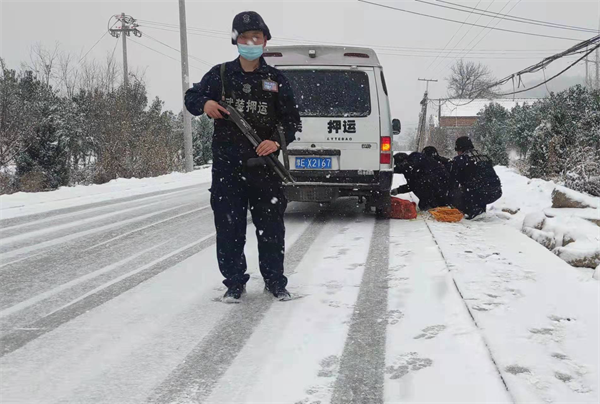 清晨,為確??钕錅?zhǔn)時(shí)送到各營業(yè)網(wǎng)點(diǎn),他們冒雪按時(shí)出發(fā)。滿天的飛雪,昏暗街區(qū),濕滑的道路,讓押運(yùn)車輛行進(jìn)艱難,各車組按照雨雪天工作預(yù)案要求認(rèn)真執(zhí)行勤務(wù)。時(shí)值中午,雪越下越大,東姚、原康、桂林、橫水線路路面已經(jīng)積雪嚴(yán)重。橫水線路在行駛至采桑路段時(shí),車長李增華看到積雪的路面,果斷將車輛停下,按照預(yù)案加裝防滑鏈。車組成員在他的指揮下,快速安裝好輪胎防滑鏈繼續(xù)前行。東姚線路和桂林線路也在押運(yùn)途中適時(shí)將車輛加裝好防滑鏈,確保車輛安全運(yùn)行。