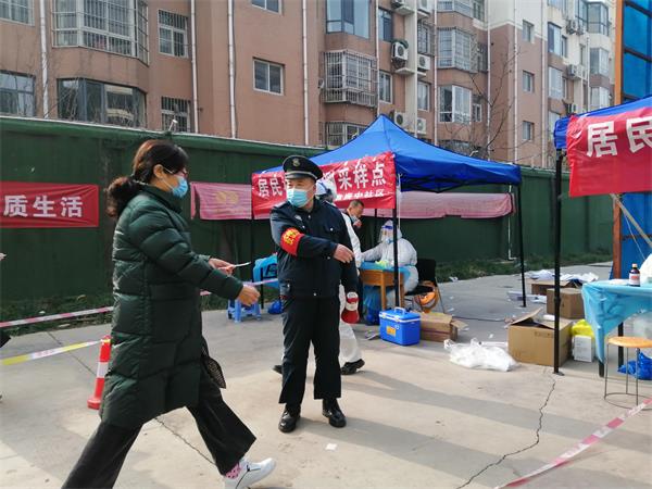 執(zhí)勤過(guò)程中,他們將隊(duì)員分為老年服務(wù)中心和星程酒店兩個(gè)小組。大家克服天氣寒冷、執(zhí)勤時(shí)間長(zhǎng)等困難,堅(jiān)守崗位,認(rèn)真負(fù)責(zé)。一遍遍提醒受核群眾保持安全距離,不厭其煩引導(dǎo)人們到指定檢測(cè)臺(tái)取樣。當(dāng)遇到老弱病殘等行動(dòng)不便的人士,隊(duì)員們就主動(dòng)向工作人員說(shuō)明情況,為他們提供幫助,優(yōu)先進(jìn)行檢測(cè)。當(dāng)兩個(gè)檢測(cè)點(diǎn)等候人員失衡時(shí),為減少排隊(duì)時(shí)間,規(guī)避交叉感染風(fēng)險(xiǎn),他們互通信息,給社區(qū)負(fù)責(zé)人提出建議,并引領(lǐng)群眾到人少的窗口接受檢測(cè)。