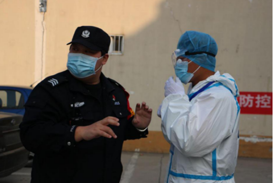 1月23日(臘月二十九),臨近春節(jié),輔警中隊忙著執(zhí)勤,保障春節(jié)期間的社會平安。李鑫和隊員白天站崗,晚上帶隊巡邏,已經(jīng)處于連軸轉(zhuǎn)的狀態(tài)。就在此時,更艱巨的任務(wù)已經(jīng)在等待他們。1月24日(除夕)夜,華強城小區(qū)發(fā)現(xiàn)疫情,分局指令輔警中隊迅速趕往華強城小區(qū),執(zhí)行警戒任務(wù)。李鑫二話不說,帶領(lǐng)當(dāng)值特保(輔警)隊員,趕到執(zhí)勤地點。個人防護用品不夠,李鑫讓隊員先用上,自己開車到家,把愛人為自己家庭準(zhǔn)備的口罩和酒精帶到執(zhí)勤點,緩解了防護用品缺乏的情況。待到分局防護物品送到前,現(xiàn)場所有執(zhí)勤隊員已經(jīng)按照要求做好防護,執(zhí)行勤務(wù)。分局楊局長夸獎輔警中隊“到位迅速,防護嚴(yán)密,心中有警”。