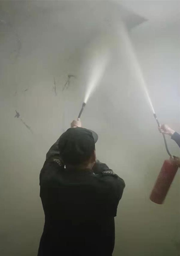 4月21日早上7點(diǎn)40分許,人防二大隊(duì)七中隊(duì)中隊(duì)長(zhǎng)李伏林帶領(lǐng)保安員宮勝偉、趙雁貴正在文博源小學(xué)門口值勤。他們警惕地注視著周圍情況,守護(hù)師生安全,疏導(dǎo)門口車輛,迎接師生有序進(jìn)校。這時(shí),二道門一位女老師忽然聞到一股刺鼻的膠皮味,隊(duì)員們聞聲立即四處查找異味的來源,發(fā)現(xiàn)后院食堂方向黑煙滾滾。不好,失火了!早上護(hù)校來到該校的副大隊(duì)長(zhǎng)張海林立即指揮隊(duì)員向著火處沖去。李伏林率先操起滅火器同隊(duì)員來到餐廳著火處,邊通知相關(guān)人員斷掉電源和燃?xì)猓呁度霚缁稹?