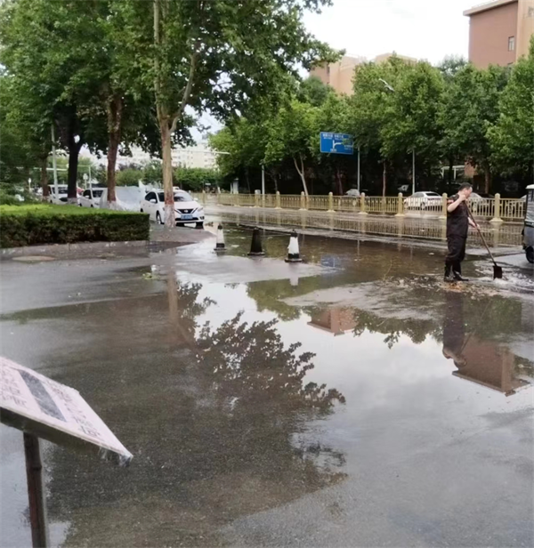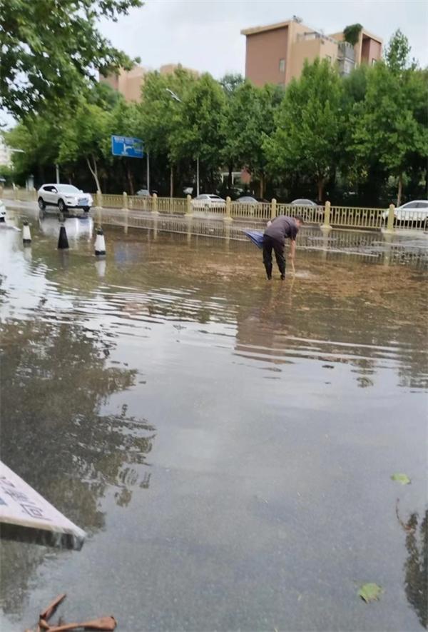 劉紅賓在積水中忙碌的身影,成為了街頭一道獨(dú)特的風(fēng)景。他全神貫注,不顧雨水的拍打和污水的浸泡,只為盡快排除積水,恢復(fù)道路的暢通與安全。經(jīng)過他的不懈努力,積水逐漸退去,道路恢復(fù)了往日的模樣。