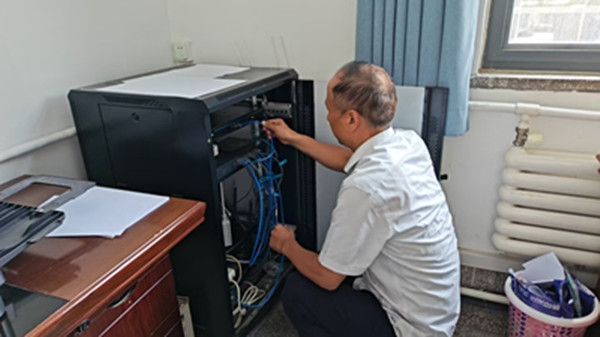 去年夏天,公司網(wǎng)絡系統(tǒng)突然全面癱瘓,鄧勝軍把剛打好的午飯放到辦公室,拎起工具包就沖向二樓機房。排查、跳線、重啟、驗證,他像“人形掃描儀”一樣在1至5樓來回穿梭。2小時后,數(shù)據(jù)恢復,系統(tǒng)滿血復活,他卻倚著墻累得不想說話不想動彈。同事們都勸他,勞逸結(jié)合,注意身體,他卻說:“故障不過夜,網(wǎng)絡不斷線?!?
