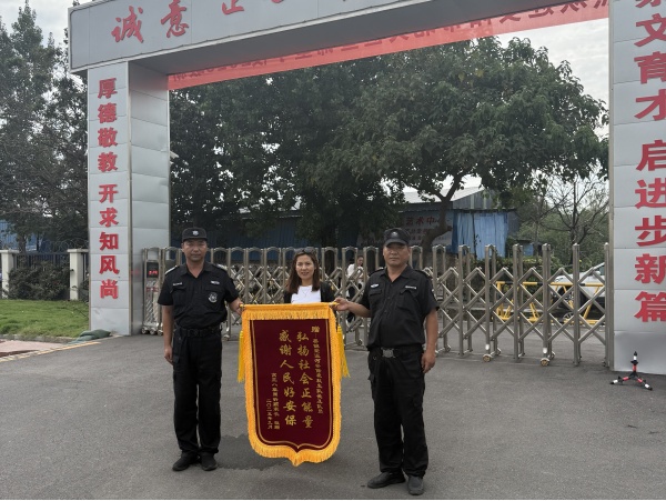 “太感謝袁隊(duì)長(zhǎng)了!要不是他細(xì)心,我這電動(dòng)車說(shuō)不定就丟了,真是幫了我大忙!”9月3日下午,一位家長(zhǎng)拿著書寫“弘揚(yáng)社會(huì)正能量 感謝人民好安?!钡腻\旗來(lái)到晝錦堂學(xué)校門口,她緊緊握著保安隊(duì)員的手連聲道謝,臉上滿是感激。這溫暖的一幕,源于技防分公司中隊(duì)長(zhǎng)袁秋生對(duì)一輛未鎖電動(dòng)車的細(xì)心保管。